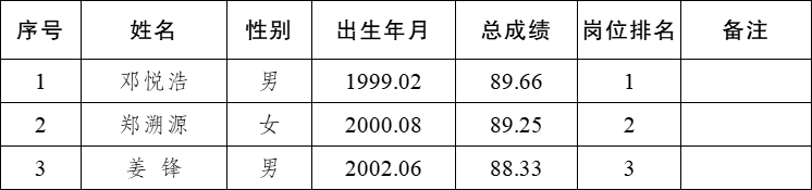 根据《广安市公共资源交易中心2024年招聘非在编工作人员公告》有关规定,经公开报名、资格审查、语言文字能力测试、面试、体检、考察等程序,现将拟聘用人员公示如下。