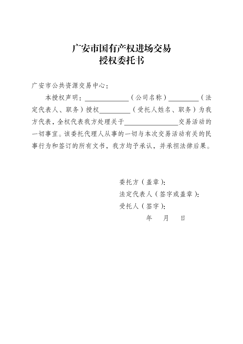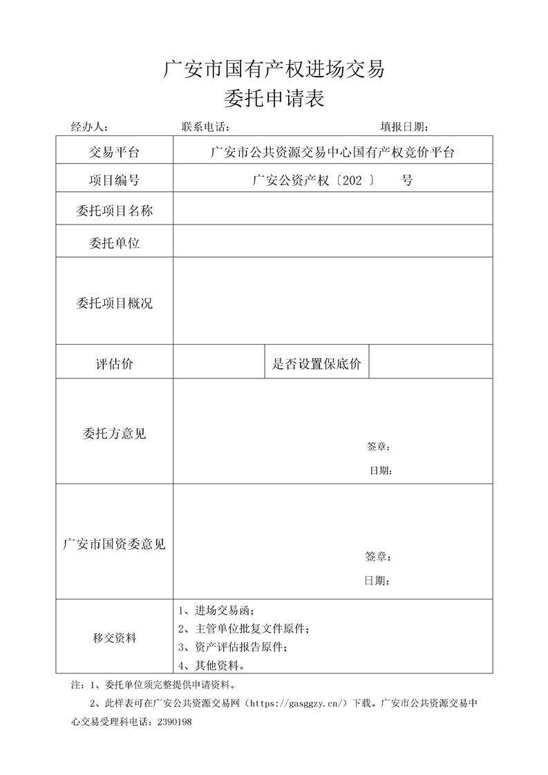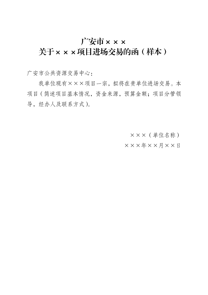 广安市公共资源交易中心国有产权项目进场交易的函
